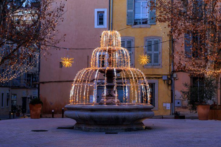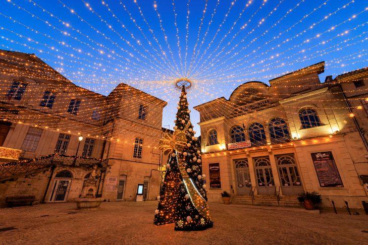 Zu den Feiertagen am Jahresende zeigt sich die Stadt Apt in der Provence in zarten Gold- und Silberlinien, die ihre provenzalische Architektur unterstreichen. In den Straßen der Innenstadt schmücken raffinierte Dekorationen rund um das Maschenmotiv die Fassaden und Bögen mit Finesse.