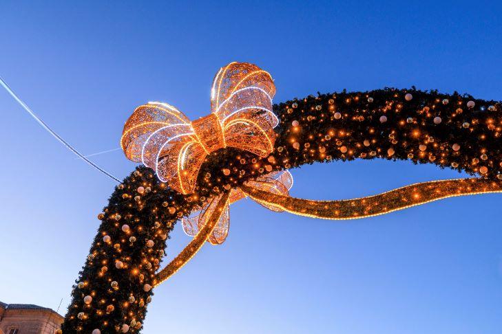 Als Symbol für Eleganz und Großzügigkeit erinnert die große Masche an die Geschenke unter dem Weihnachtsbaum und verleiht der Stadt Apt eine warme und kostbare Atmosphäre. Lichtspiele betonen die Besonderheiten, heben das Kulturerbe hervor und schaffen eine subtile festliche Stimmung.